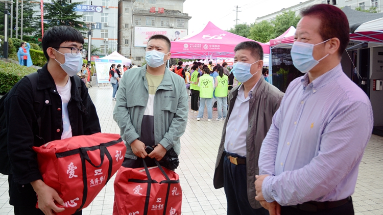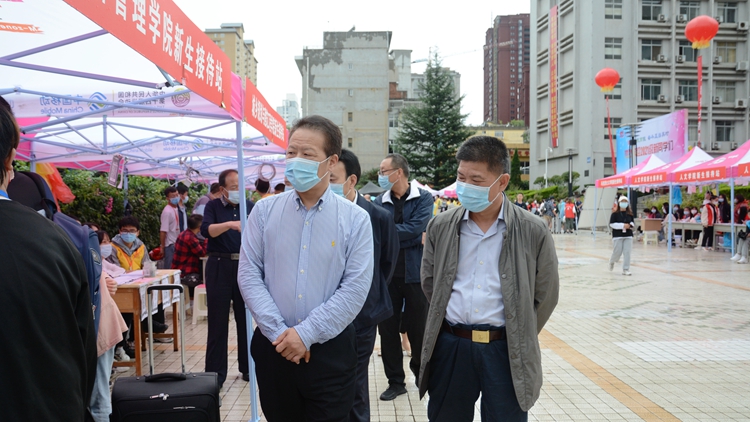 秋雨潤校園,熱情益彰顯。9月1日,我校第一批新生懷揣夢想來校報到,開啟一段新的人生征程。校黨委書記張志昌、校長范新會、黨委副書記彭虎軍、副校長劉寶盈在相關職能部門負責人的陪同下深入迎新現場,檢查指導迎新工作,看望慰問報到新生,并為家庭經濟困難新生發放愛心禮包。