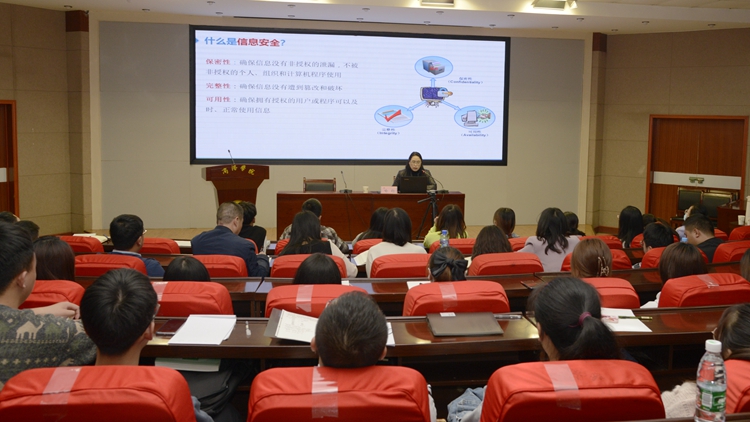報(bào)告會(huì)上,喻鈞教授以短視頻《一個(gè)人的普通一天》為切入,解讀了什么是信息安全、信息安全要素和特性。結(jié)合國(guó)際和國(guó)內(nèi)有影響力的重大網(wǎng)絡(luò)安全事件,分析了信息安全面臨的威脅。以《商學(xué)院》雜志《別忘了關(guān)門》的小故事為例,介紹了常見網(wǎng)絡(luò)安全攻擊手段,闡述了培養(yǎng)信息安全意識(shí)的重要性。解讀了國(guó)家網(wǎng)絡(luò)安全政策及《國(guó)家網(wǎng)絡(luò)安全法》的主要框架,并向師生介紹了信息安全防護(hù)的主要方法。喻鈞教授還向大家分享了西安工業(yè)大學(xué)在網(wǎng)絡(luò)安全人才培養(yǎng)方面的經(jīng)驗(yàn)和做法,她呼吁廣大師生要提高安全防范意識(shí),警惕各種形式的安全陷阱和詐騙手段,關(guān)注信息安全,學(xué)習(xí)安全知識(shí),遵守安全法規(guī),做好安全防護(hù),為維護(hù)國(guó)家安全作出應(yīng)有的貢獻(xiàn)。