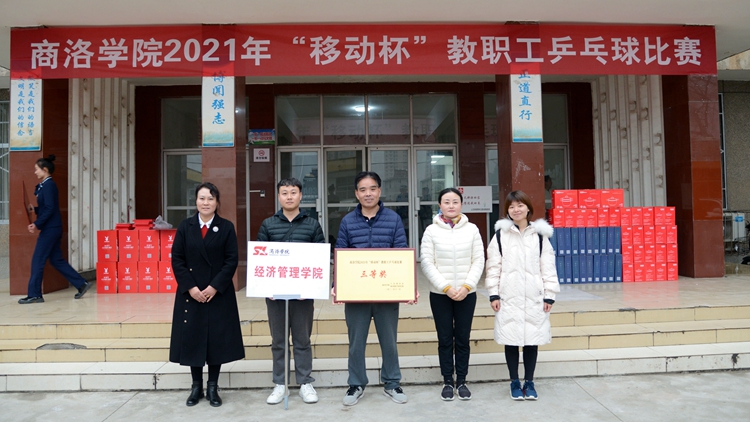 11月16-20日,由校工會(huì)、體育教學(xué)研究部主辦,教職工乒乓球協(xié)會(huì)承辦的2021年“移動(dòng)杯”教職工乒乓球團(tuán)體賽在北新街校區(qū)乒乓球館舉行。校黨委副書記、工會(huì)主席彭虎軍,商州移動(dòng)公司副總經(jīng)理、工會(huì)主席李丹波出席頒獎(jiǎng)儀式并為獲獎(jiǎng)代表隊(duì)頒獎(jiǎng)。