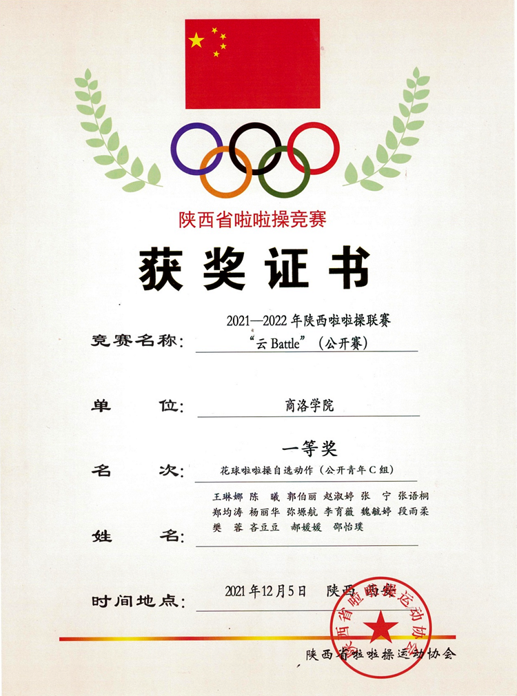 12月4日,2021-2022年陜西省啦啦操聯(lián)賽“云BATTLE”公開賽在西安曲江南湖小學(xué)芙蓉校區(qū)舉辦,來自全省各地市的300多支隊伍共聚云端,切磋交流、一決高下。經(jīng)過激烈角逐,我校代表隊榮獲花球啦啦操(公開青年C組)自選動作一等獎。