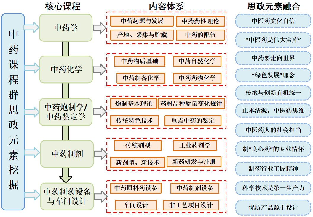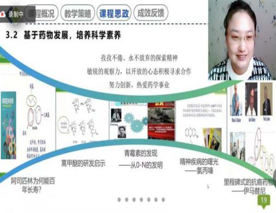 發(fā)掘思政育人元素,強化課程思政頂層設(shè)計。生物學(xué)院教工第二黨支部組建了制藥工程教學(xué)團隊,聚焦中藥學(xué)課程專業(yè)特色和制藥工程專業(yè)的育人目標,提出“守正創(chuàng)新,立德樹人”的課程思政建設(shè)理念。緊扣立德樹人根本、強化傳承創(chuàng)新目標、抓牢質(zhì)量提升主線、抓好師資隊伍建設(shè),為中藥學(xué)課程思政教學(xué)奠定基礎(chǔ)。堅持把培育和踐行社會主義核心價值觀貫穿師生專業(yè)課實踐教學(xué)、社會實踐活動、創(chuàng)新創(chuàng)業(yè)教育、志愿服務(wù)等過程,增強思想引領(lǐng)和價值觀塑造的實效性。將專業(yè)課與產(chǎn)業(yè)鏈銜接,推進對接產(chǎn)業(yè)鏈的專業(yè)思政實現(xiàn)路徑,培養(yǎng)學(xué)生愛崗敬業(yè)與責(zé)任擔(dān)當,弘揚愛國精神、厚植家國情懷。構(gòu)建全新的立體化實踐教學(xué)體系,實施專業(yè)課程思政,落實全員育人、全程育人、全方位育人。