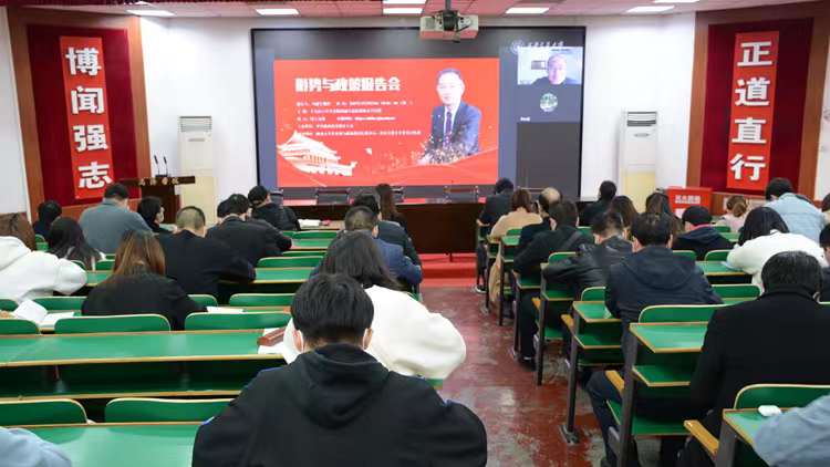 為深入貫徹落實黨的十九屆六中全會精神并將全會精神準確融入思政課,3月29日下午,陜西省委教育工委舉辦形勢與政策高端視頻報告會,邀請中國人民大學馬克思主義學院二級教授、博士生導師劉建軍,為全省高校師生作題為“十九屆六中全會精神融入思政課的幾個問題”的專題報告。我校組織部、宣傳部、統(tǒng)戰(zhàn)部、學工部、馬克思主義學院相關負責人,全體思政課教師、輔導員和馬克思主義學院學生代表通過在線直播集中聽取報告。