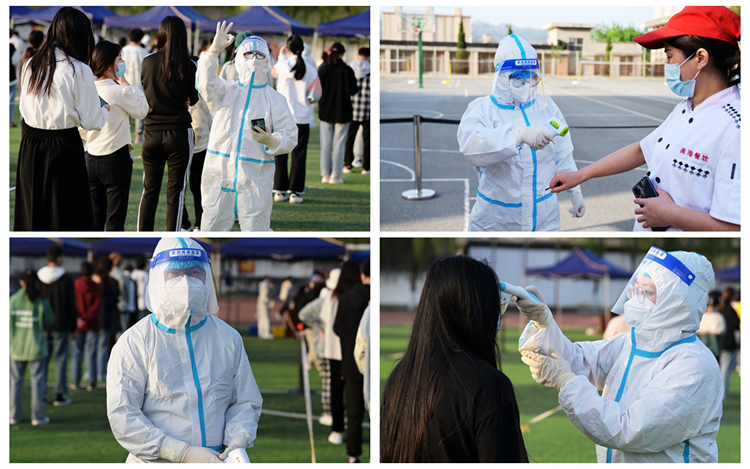 為進一步快速排除疫情防控風險隱患,堅決阻斷疫情擴散,從4月8日以來,根據商州區新冠肺炎疫情聯防聯控工作領導小組安排,我校北新街校區、丹江校區開展了3輪全員核酸檢測工作。在全校上下的共同努力下,學校每日核酸檢測工作有序開展,全體師生員工(含各部門臨聘人員、環衛、食堂、超市、浴室、快遞、打印、理發等從業人員、在校居住教職工家屬及離退休職工)檢測結果均為陰性。