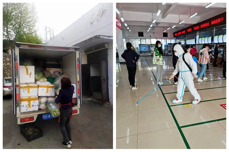 從4月7日下午開始,全體后勤保障人員迅速進入戰斗狀態,同時開展師生排查流調、防控物資儲備、校園衛生消殺、隔離房準備、師生轉運隔離等多項工作。因校園緊急封閉管理,留在校內的工作人員比平時少了五分之一。在時間緊、任務重、人手缺的情況下,全體后勤人員舍小家為大家,24小時堅守在工作崗位上,兩個校區隨處可見后勤人員忙碌的身影。這些天來,后勤人員集體打地鋪,在辦公室、車內休息,全力確保兩校區飲食、水電、校園環境衛生等基本生活保障平穩有序。