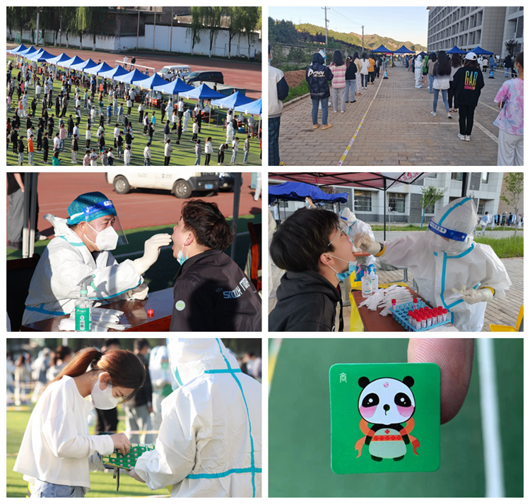 當天清晨,校領(lǐng)導親赴現(xiàn)場指導工作。全體人員全程佩戴口罩,間隔一米整齊排隊,攜帶個人健康碼,分批次、分時段進入信息采集區(qū)和核酸采樣區(qū),配合醫(yī)護人員完成采樣工作,領(lǐng)取“秦嶺四寶·熊貓貼”后有序離開現(xiàn)場。檢測現(xiàn)場秩序井然,各項工作有條不紊。經(jīng)歷2小時20分鐘,全體師生員工(含各部門臨聘人員、環(huán)衛(wèi)、食堂、超市、浴室、快遞、打印、理發(fā)等從業(yè)人員、在校居住教職工家屬及離退休職工)核酸檢測采樣順利結(jié)束。