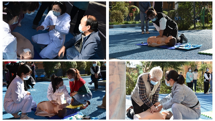 活動現場通過情景演練、發放急救宣傳頁、播放急救視頻、模擬人急救實操,講解突發狀況時如何正確處置、采取何種急救措施,展示標準心肺復蘇急救流程、動作要領、注意事項和邀請觀眾參與模擬等環節向現場觀眾全面宣傳展示了自救互救基本技能。離退休職工工作處處長王輝表示,希望通過此次活動,幫助老同志們掌握一定的急救常識,對進一步保障老人和家人身體健康,營造“人人學急救,急救為人人”的良好社會風尚。