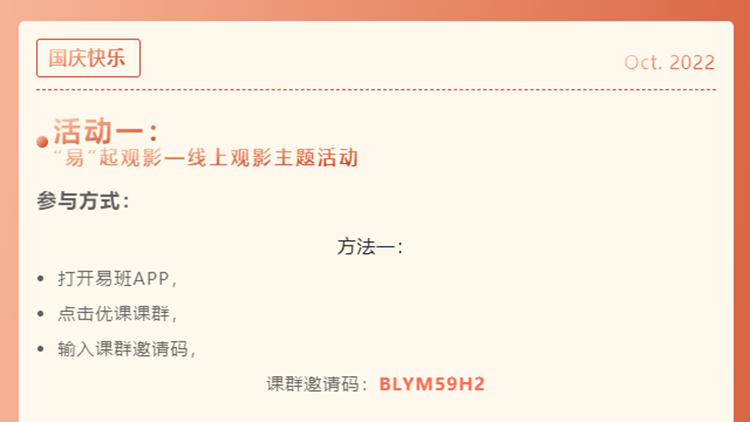 學生處通過易班平臺舉辦了易”起線上觀影、“易”句告白祖國、“易”起學習優課等活動,邀請全校師生觀看紅色電影、抒發愛國之情、參與“喜迎黨的二十大”優課課群答題,重溫黨的百年征程波瀾壯闊,感受百年黨史篳路藍縷和百年初心歷久彌堅。