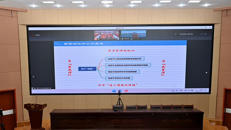 12月7日下午,我校在圖書館二樓報告廳召開本科教育教學審核評估工作培訓會,邀請評估專家、常熟理工學院教學質量管理處處長黃文祥做了題為“新一輪審核評估學校評建實踐”的線上報告。各職能部門主要負責人,二級學院(部)黨、政主要負責人參加了培訓會。會議由副校長劉寶盈主持。
