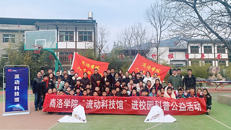 我?!傲鲃涌萍拣^”科普進校園志愿服務項目自2017年組建以來,先后為省內外40余所中、小學開展線上、線下科普志愿服務活動60余場次,受益師生群眾4萬余人。2022年,我校在前期工作的基礎上打造了涵蓋“生物醫藥”“趣味物化”“信息技術”“生態環境”“體育健康”“文化藝術”六大主題的33個線上科學課程,聯合陜西省科協、商洛市科協等單位開展“云端秦嶺科技館·公益科普大講堂”“喜迎二十大,科普向未來—流動科技館云端巡展活動”等主題活動,受到地方政府和群眾的高度贊譽。我校被陜西省科協表彰為“‘十三五’陜西省全民科學素質工作先進集體”。項目被商洛市科學技術協會授予“科普流動課堂”稱號,榮獲全國大學生“互聯網+”創新創業大賽陜西賽區金獎,并入選省科協10年科普工作優秀案例、“全國科普日”優秀活動,中國科協科技志愿服務項目,成果在全國科技志愿服務云沙龍中向全國觀眾展示,被中國科技網、學習強國、《人民日報》等官方媒體報道40余次。