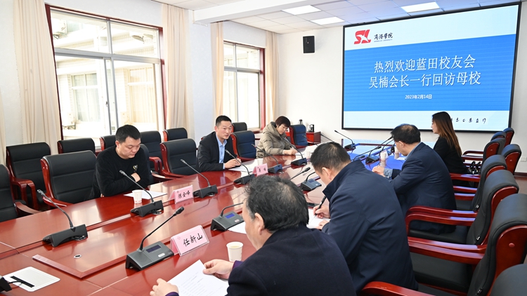 2月14日,藍田校友會會長、2005屆思想政治教育專業校友、藍田縣滋水中學黨支部書記、校長吳楠,2005屆體育教育專業校友、滋水中學副校長陳金峰回訪母校,共敘發展,滋水中學副校長羅衛玲陪同訪問。校黨委副書記彭虎軍、副校長王新軍熱情接待了吳楠一行。國內合作與校友工作處、馬克思主義學院、繼續教育學院相關負責人參加座談會。