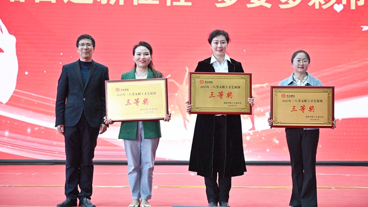 為慶?!叭恕眿D女節,營造健康向上的校園文化氛圍,3月8日下午,校工會以“團結奮進新征程 多姿多彩巾幗秀”為主題,組織舉辦了 “三八”婦女節女教職工才藝展演活動。活動在丹江校區舉行,來自工會各分會的女教工們表演了歌曲、舞蹈、朗誦、健美操、戲曲聯唱等18個文藝節目。校黨委副書記、工會主席彭虎軍,工會副主席魚小強出席活動并為獲獎節目頒獎。工會各分會主席、校工會全體工作人員和廣大女教職工歡聚一堂,共同欣賞舞臺上別樣的巾幗風采。