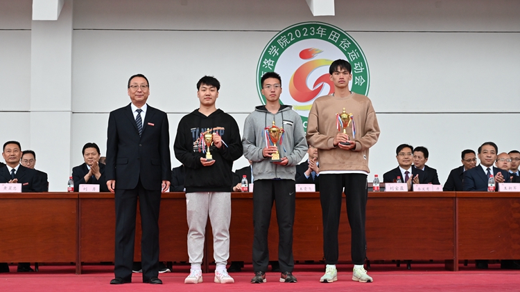 在熱烈的掌聲中,副校長劉寶盈分別為獲得體育道德風尚獎的學院和團體總分前三名獲獎的學院頒獎,副校長王新軍為男子總分前三名頒獎,副校長郭瑾為女子總分前三名獲獎學院頒獎。