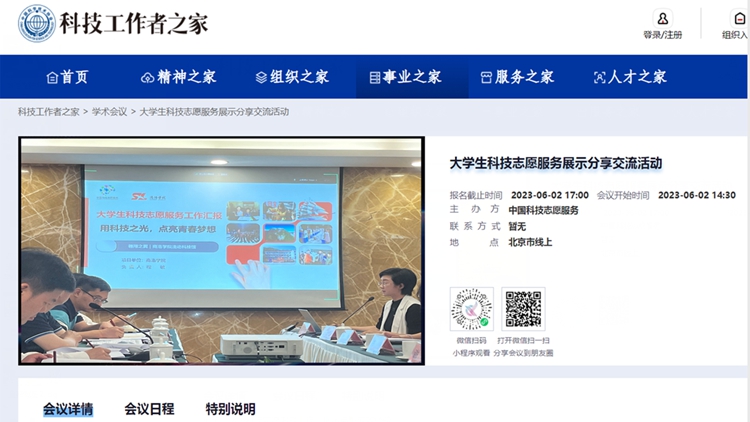 為充分展示大學生科技志愿服務工作典型成效經驗,推動相關工作高質量發展,6月2日,由中國科學技術協會主辦的全國大學生科技志愿服務交流展示活動在北京舉行。中國科學技術協會宣傳文化部部長郭哲、北京師范大學民生保障研究中心主任謝瓊、全國學校共青團研究中心常務副主任秦濤出席活動并講話。活動分線下交流、線上展示兩個階段進行,我校與北京航空航天大學、哈爾濱工程大學等6所高校受邀作現場展示交流,800余所高校線上收看直播。