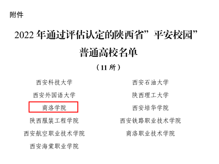 近日,中共陜西省委教育工委、陜西省教育廳印發《關于授予西安科技大學等107所學校陜西省“平安校園”稱號的決定》(陜教工函〔2023〕119號),經專家組現場對標打分、集體研究,省教育廳廳務會議審議,我校繼2017年首次獲得省級“平安校園”稱號之后,再度榮獲陜西省“平安校園”榮譽稱號。