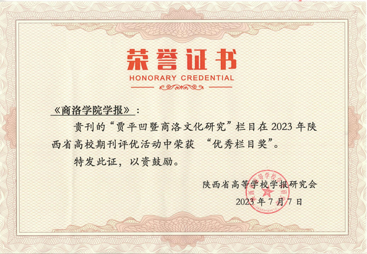 7月7日,2023年度陜西省高校期刊評優(yōu)結(jié)果揭曉,我校主辦的《商洛學院學報》被評為“陜西高校精品社科期刊”,學報優(yōu)勢欄目“賈平凹暨商洛文化研究”獲“優(yōu)秀欄目獎”。