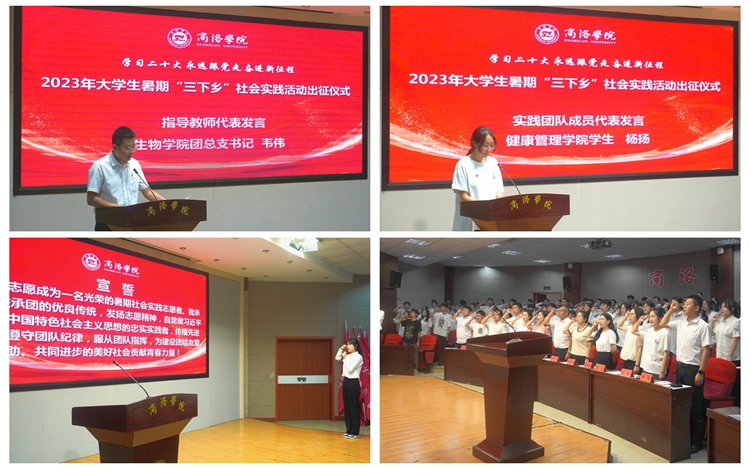 7月12日,我校舉行“學習二十大 永遠跟黨走 奮進新征程”2023年大學生暑期“三下鄉”社會實踐活動出征儀式。學生處、團委負責人出席活動,各二級學院團總支書記、指導教師代表和實踐團隊成員代表參加活動。
