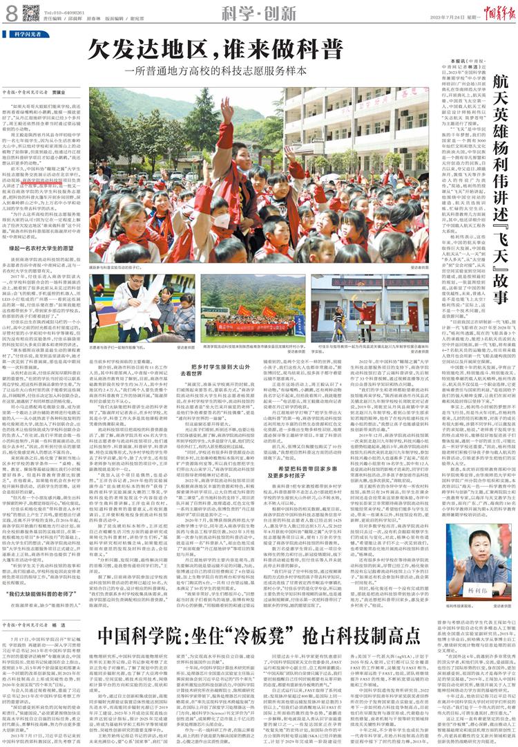 7月24日,《中國青年報》第8版以《欠發達地區,誰來做科普一所普通地方高校的科技志愿服務樣本》為題,對我校流動科技館科技志愿服務項目進行了專題報道。
