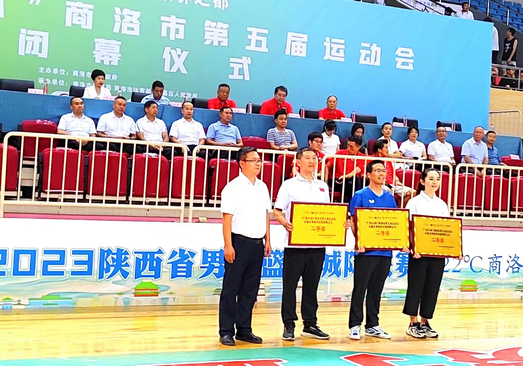 8月18日,商洛市第五屆運動會閉幕式在市體育館舉行,副校長劉寶盈出席。大賽組委會通報了比賽成績并為獲獎代表隊頒獎。我校榮獲企事業單位組團體總分二等獎受到表彰。