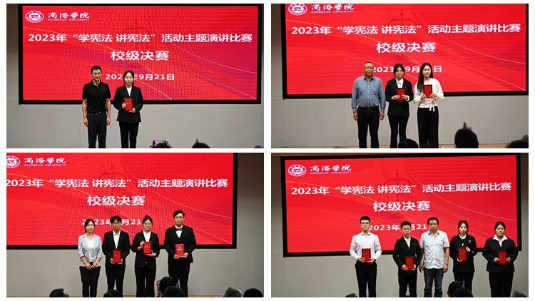 為深入學習宣傳貫徹習近平法治思想,在全校范圍內營造“學憲法 講憲法”的良好氛圍,根據陜西省教育廳和學校黨委相關工作安排,9月21日下午,我校舉辦2023年“學憲法 講憲法”活動主題演講比賽校級決賽。校黨委副書記劉勇,商洛市委理論講師團團長楊月治,商洛革命老區暨紅色文化研究中心主任楊增強以及組織部、宣傳部、學工部、校團委相關負責人擔任比賽評委。各二級學院黨委、黨總支負責人和學生代表現場觀摩比賽。
