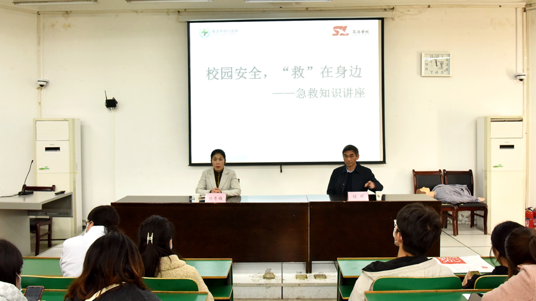 為深入貫徹落實(shí)習(xí)近平總書(shū)記關(guān)于校園安全重要指示精神,強(qiáng)化學(xué)校應(yīng)急救護(hù)知識(shí)普及,提高師生安全意識(shí)與急救能力,11月22日下午,我校邀請(qǐng)商洛市中心醫(yī)院急診科主任程輝來(lái)校為師生作《校園安全,“救”在身邊》為主題的急救知識(shí)講座。2023級(jí)輔導(dǎo)員,學(xué)生代表,校醫(yī)院所有醫(yī)務(wù)人員及部分自愿參會(huì)的師生共計(jì)200余人參加講座。講座由校醫(yī)院院長(zhǎng)任秀梅主持。