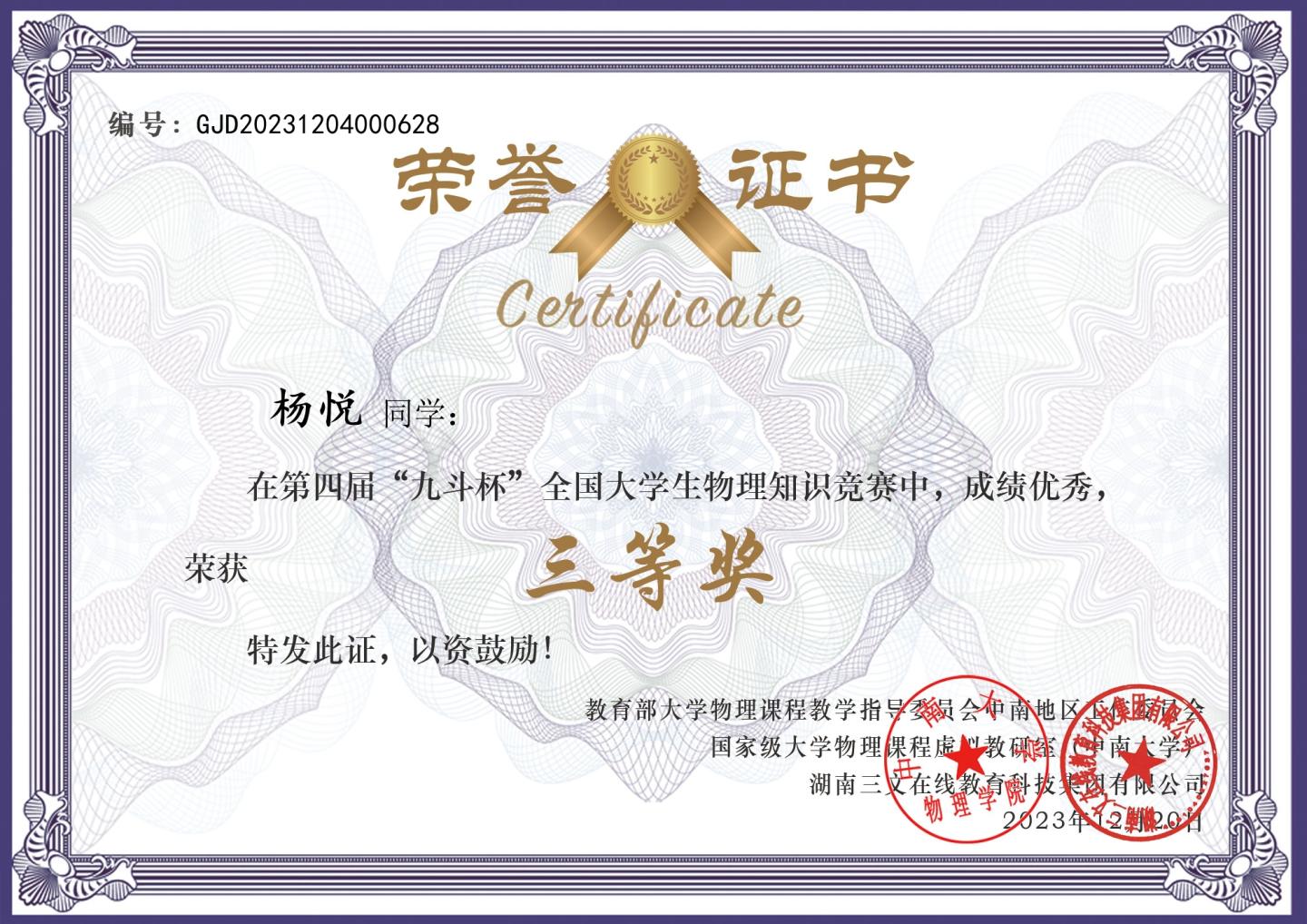 我校學(xué)子在第四屆“九斗杯”全國(guó)大學(xué)生物理知識(shí)競(jìng)賽中獲獎(jiǎng)