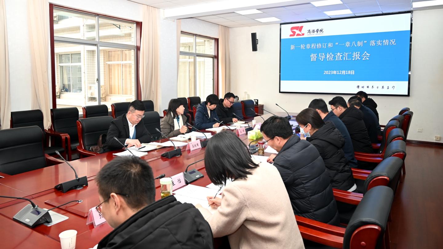 12月18日,省政府教育督導委員會督導檢查組一行4人來到我校,對新一輪章程修訂工作和“一章八制”落實情況開展實地督導檢查。校黨委副書記劉勇出席匯報座談會。黨委辦公室·院長辦公室、紀委、宣傳部、工會、人事處、學生處、教務處、財務處相關負責人參加會議。