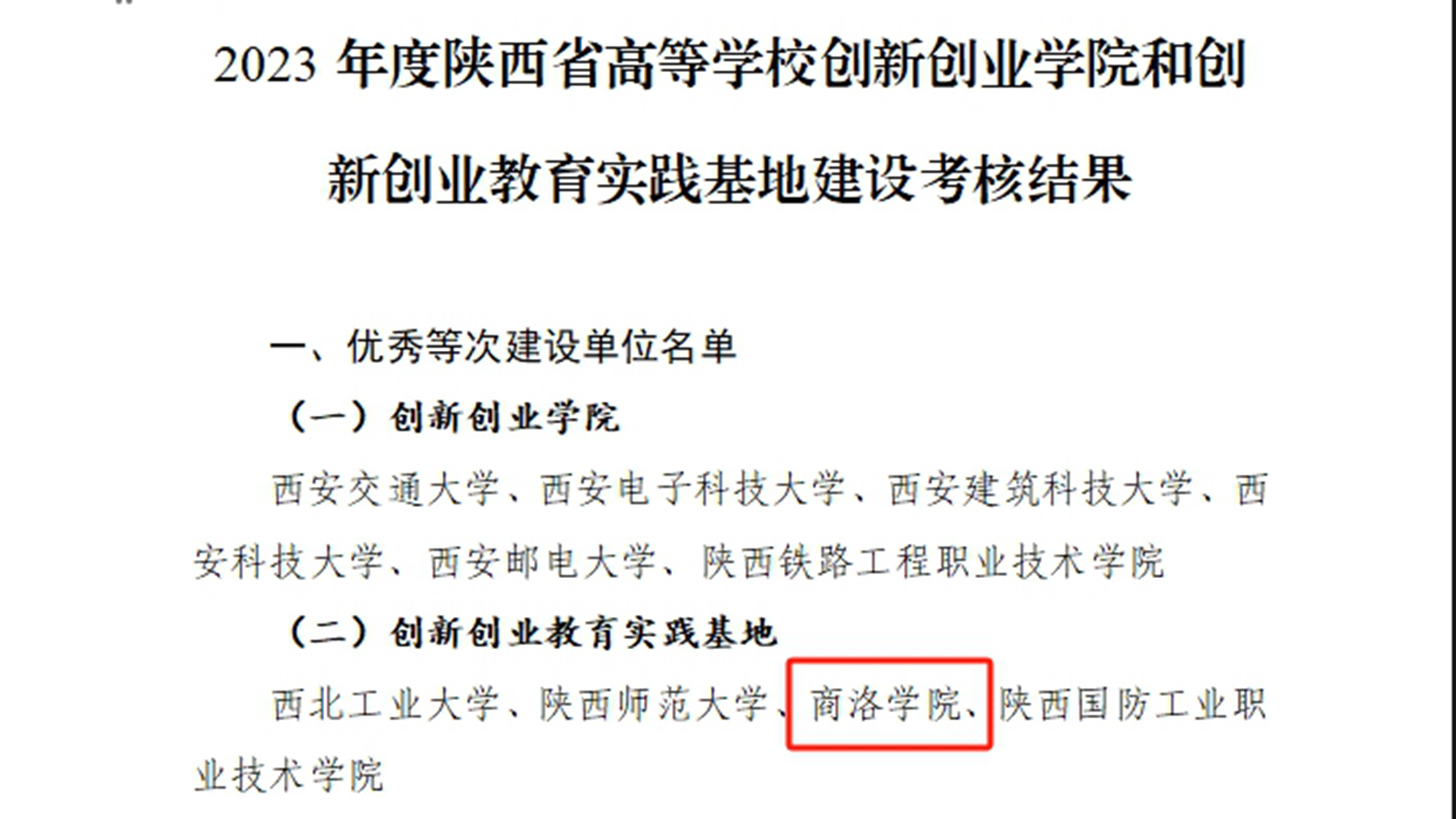 日前,陜西省教育廳公布了2023年度陜西省高等學校創新創業學院和創新創業教育實踐基地考核結果。我校省級創新創業教育實踐基地獲評考核“優秀”等次,是此次全省唯一一所獲評優秀等次的地方應用型本科院校。