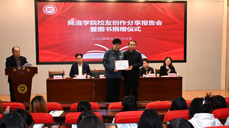 3月26日,我校82屆中文系校友楊高智受邀為師生作創(chuàng)作分享報(bào)告,并向?qū)W校捐贈(zèng)個(gè)人編撰的圖書(shū)《商州存照》70冊(cè)。副校長(zhǎng)王新軍出席捐贈(zèng)儀式。國(guó)內(nèi)合作與校友工作處、圖書(shū)館負(fù)責(zé)人,人文學(xué)院黨政負(fù)責(zé)人,圖書(shū)館、國(guó)內(nèi)合作與校友工作處全體工作人員和師生代表100余人參加儀式。儀式由人文學(xué)院黨委書(shū)記杜明生主持。