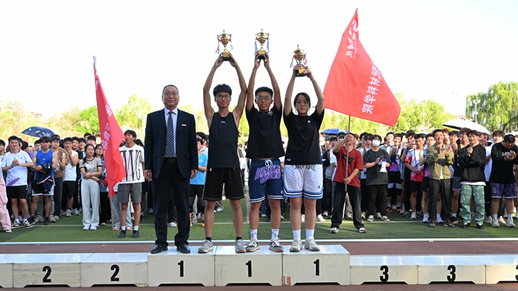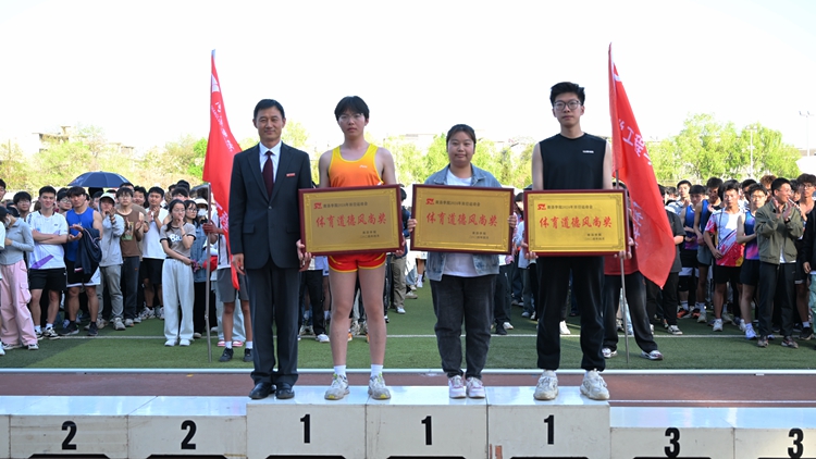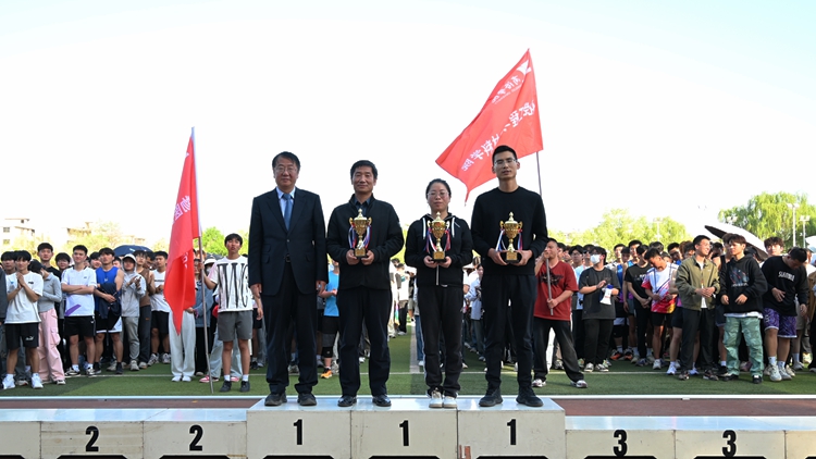在熱烈的掌聲中,劉勇、王浩分別為獲得體育道德風尚獎和教工組團體總分前三名的學院頒獎,劉寶盈、王新軍、郭瑾分別為獲得團體總分、男子團體總分、女子團體總分前三名的學院頒獎。