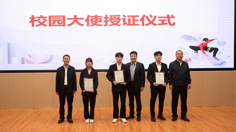HCSD(HuaweiCloudStudentDevelopers)指華為云學生開發者,該平臺是由校園大使為代表的校園開發者組織,旨在幫助高校師生在華為云領域進行學習和創新。活動中,我校3名學生李輝、孫晨景、李歡歡受聘為華為校園大使。劉寶盈、孫偉、康明亮共同為校園大使授牌。