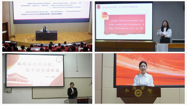 在團員青年主題宣講環節,校團委紅色號角宣講團成員白易媛、張雨欣、楊婷、特暢以《砥礪奮進新征程實干擔當譜新篇》《學思踐悟新思想篤行實干向未來》《生而逢盛世青年當有為》《讓學雷鋒在新時代大學生中蔚然成風》為題,著眼于優秀校友、身邊典型,號召廣大青年堅定理想信念,聽黨話、跟黨走,爭做有理想、能吃苦、敢擔當、肯奮斗的新時代好青年。