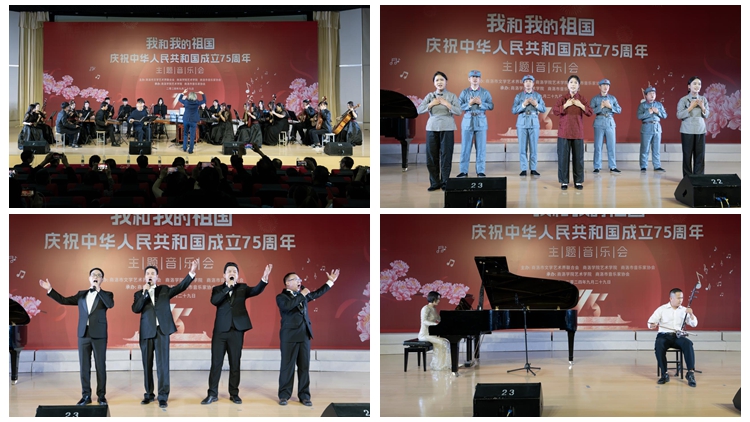 為慶祝新中國75周年華誕,增強商洛市民的愛國熱情和民族自豪感,9月29日晚,由商洛市文學藝術界聯合會、商洛學院藝術學院、商洛市音樂家協會聯合主辦“我和我的祖國——慶祝中華人民共和國成立75周年主題音樂會”在商洛學院隆重舉辦。商洛市文聯黨組書記、主席劉明權,市文聯黨組成員、專職副主席李志華,商洛學院黨委委員、組織部部長張向東,黨委委員、宣傳部部長王霄飛,商洛市音協主席李世鵬,藝術學院黨政領導班子與300余名師生及社會各界人士共同觀看演出。