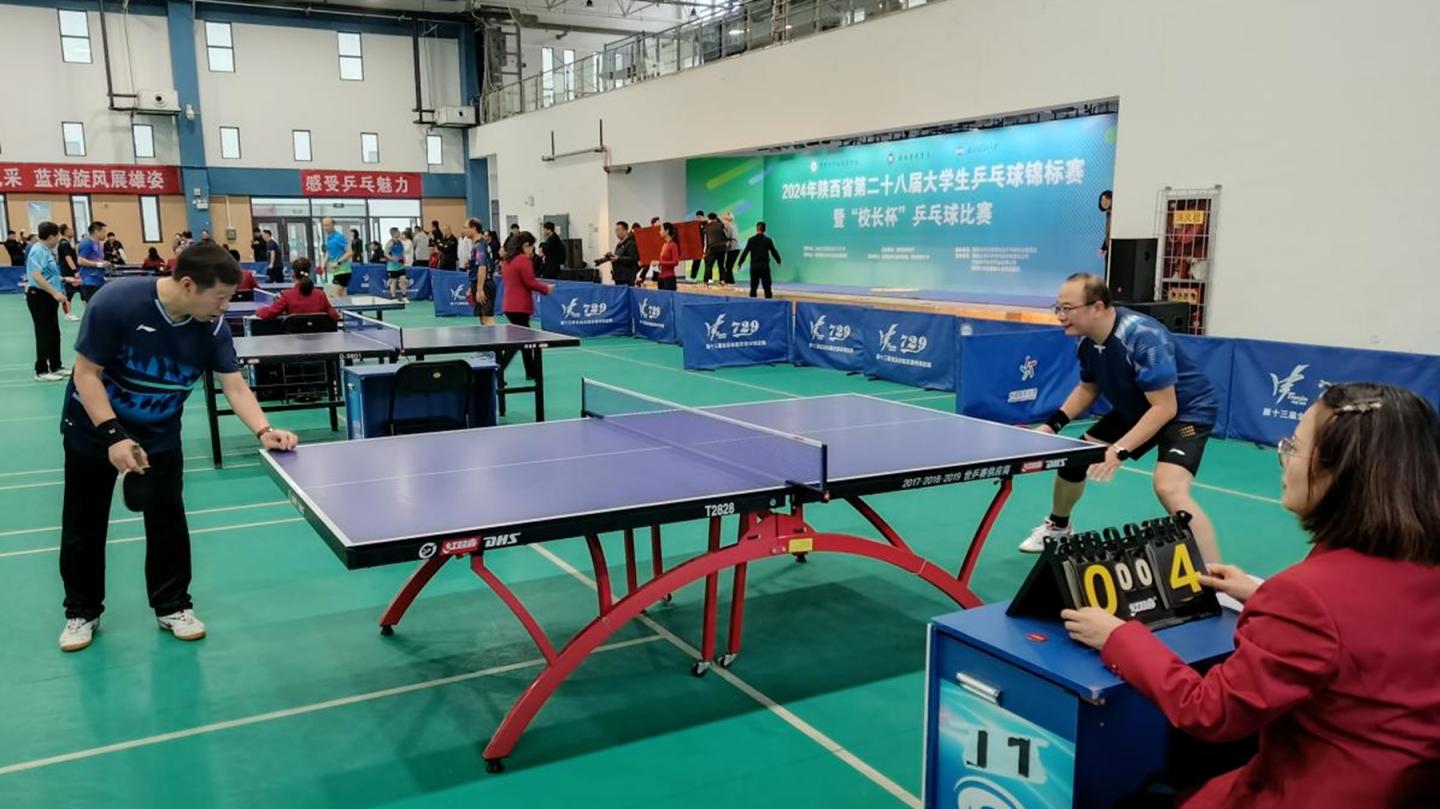 10月26日至27日,由陜西省教育廳主辦,陜西省學生體育協會、西安財經大學承辦,陜西省學生體育協會乒乓球專業委員會協辦的2024年陜西省第二十八屆大學生乒乓球錦標賽暨“校長杯”比賽在西安財經大學舉行。副校長劉寶盈、王新軍、郭瑾參加“校長杯”甲組團體比賽和單打比賽。