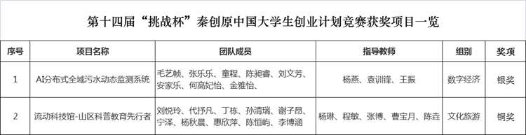 本屆競賽由共青團中央、教育部、人力資源和社會保障部、中國科協、全國學聯、陜西省人民政府聯合主辦,西安交通大學、共青團陜西省委承辦,設置主體賽及“一帶一路”國際邀請賽、“秦創原”創新挑戰賽2項配套交流活動。此次競賽共吸引來自2700余所高校的300多萬名學生參與,累計提交39萬余個創新創業項目。經過各學校初賽、各省復賽,共有412所國內高校、14所國際高校的839個項目進入全國決賽終評,最終在“秦創原”創新挑戰賽中,我校推薦的項目《AI分布式全域污水動態監測系統》獲銀獎、《流動科技館-山區科普教育先行者》獲銅獎。