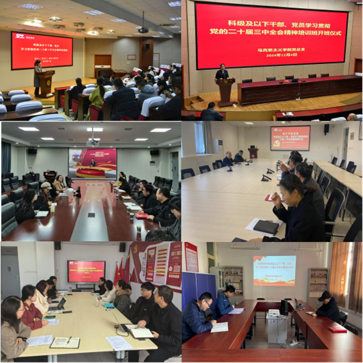 馬克思主義學院黨總支等10個二級學院黨委、黨總支在重點學習了相關視頻課程的基礎上,分別結合各學院學科優勢,將學習培訓與中心工作相結合,自覺主動地深入學習貫徹、領會解讀、宣傳闡釋黨的二十屆三中全會精神,通過專題黨課、專題輔導等方式生動形象地展示了黨的二十屆三中全會精神的核心要點和重要意義。同時,通過組織線上學習將外出實習的學生黨員納入培訓范圍,做到黨的二十屆三中全會精神學習培訓全覆蓋。