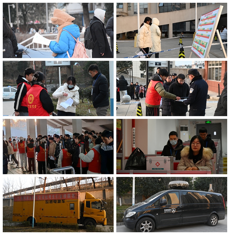 學校高度重視研考工作,校長權雅寧、副校長劉寶盈總體指揮調度,各職能部門分工協作,二級學院積極配合,相關負責人聯合值班,共同護航平安研考。考務組、試題組、保密組、保衛組、后勤保障組等考點服務工作小組各司其職、密切配合,按照工作流程認真做好考場視頻監控調試、考務用品準備、考場布置、試題保密、治安保衛、水電暖設備監控維護等各項準備工作,并提前對400余名考務、安保、后勤保障人員和志愿者開展了業務培訓,確保考試順利進行。工作人員和志愿者認真組織、熱心服務,積極引導考生接受智能安檢,有序進入考場,助力考生安心考試。