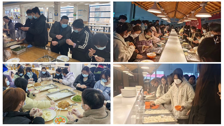 各食堂為師生精心準備了面團、餃子皮、餃子餡、料汁等材料,食堂廚師現場講解示范了包餃子技巧,在場師生紛紛擼起袖子分工協作、調餡搟皮,現場氣氛熱烈。