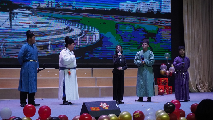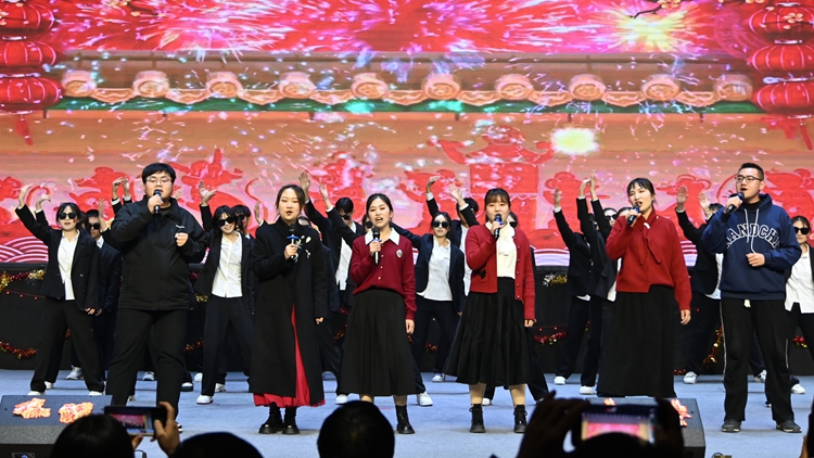 馬克思主義學(xué)院、人文學(xué)院、數(shù)計學(xué)院師生同臺,聯(lián)袂表演合唱、朗誦等節(jié)目,共話師生情誼及新年愿景。