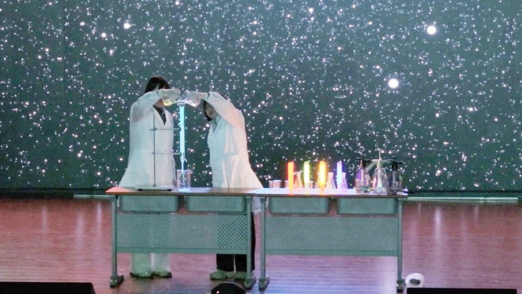 化材學(xué)院結(jié)合第二屆美育節(jié),在節(jié)目表演中穿插熒光反應(yīng)、魯米諾反應(yīng),為觀眾呈現(xiàn)了美輪美奐的視聽盛宴。