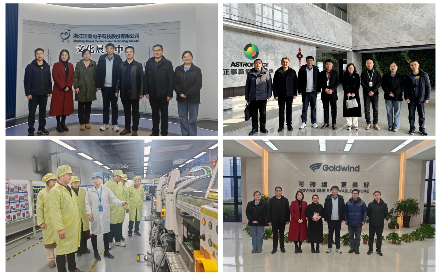 在湖州市安吉縣人社局相關負責人和商洛學院駐湖州就業人才工作聯絡處負責人高擴昌的帶領下,陳垚一行先后參觀考察了湖州市安吉縣一么么科技(浙江)有限公司、浙江潔美電子科技股份有限公司、杭州洲鉅電子科技有限公司等3家企業。在江蘇鹽城,陳垚一行又先后前往鹽城正泰新能源科技有限公司、天合光能(鹽城大豐)有限公司、鹽城市大豐區人力資源與社會保障局、江蘇金風科技有限公司、大豐阿特斯陽光電力科技有限公司、大豐區新型電力系統零碳產業園等6家單位考察調研,深入了解企業在電子信息、新能源等領域的發展現狀、技術創新以及市場前景,并就校企合作、人才培養、科研合作等方面與單位負責人進行了深入的交流探討。