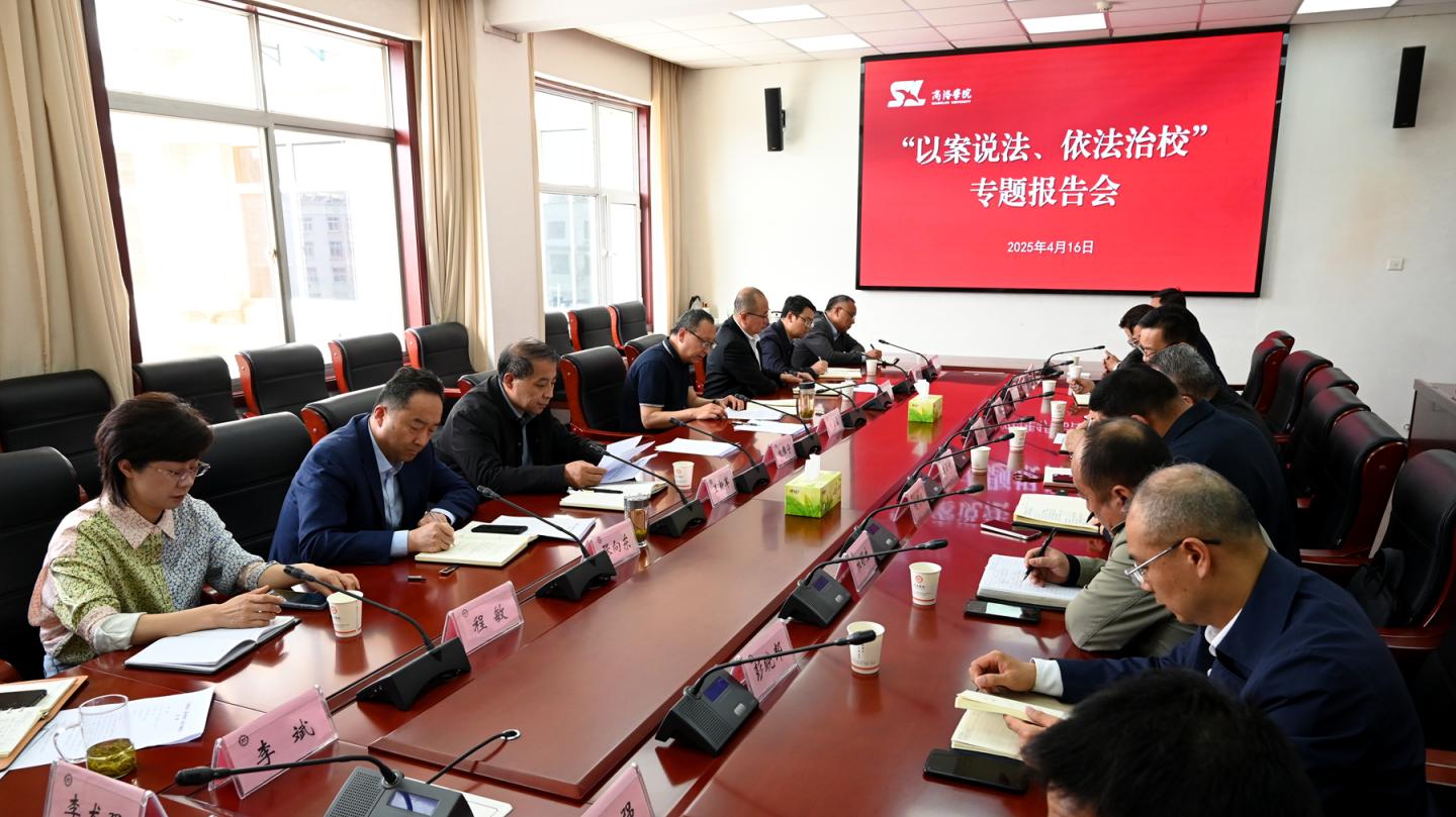 4月16日,學(xué)校召開“以案說法、依法治校”法治專題報告會。學(xué)校特聘法律顧問、天乾律師事務(wù)所陳波律師為各部門負(fù)責(zé)人作依法治校專題報告。報告會由校黨委副書記劉寶盈主持。副校長王新軍、郭瑾、張向東出席報告會。