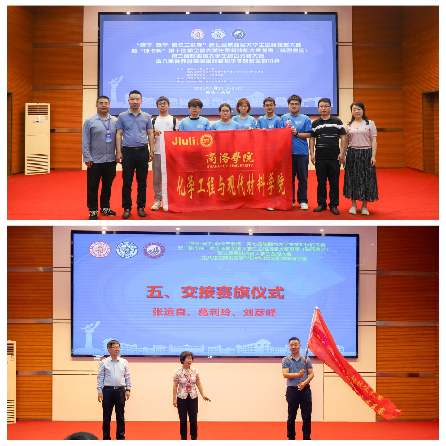 2026年,陜西省第八屆大學生金相技能大賽將由我校承辦。大賽閉幕式上,化材學院副院長劉彥峰代表學校完成賽旗交接儀式。