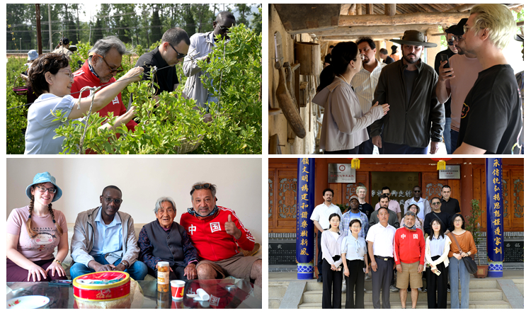 在洛南縣景村鎮(zhèn)御史村,外籍教師們在合作社實地體驗金銀花采摘、產(chǎn)品制作過程,深入了解中醫(yī)藥知識,感受校地合作創(chuàng)新成果。期間,還參觀了御史村家風(fēng)教育館、農(nóng)耕展覽館和農(nóng)家書屋等文化地標(biāo),感受當(dāng)?shù)氐臍v史文化和風(fēng)土人情。沿途欣賞蟒嶺綠道風(fēng)光,在巍巍秦嶺的青山綠水間,領(lǐng)略中華優(yōu)秀傳統(tǒng)文化中人與自然和諧相處的生態(tài)智慧。參觀過程中,外籍教師紛紛豎起大拇指,為商洛生態(tài)文明建設(shè)點贊,表示要積極投身學(xué)校和商洛發(fā)展建設(shè),從己做起“讓世界在商洛看見美麗中國”。