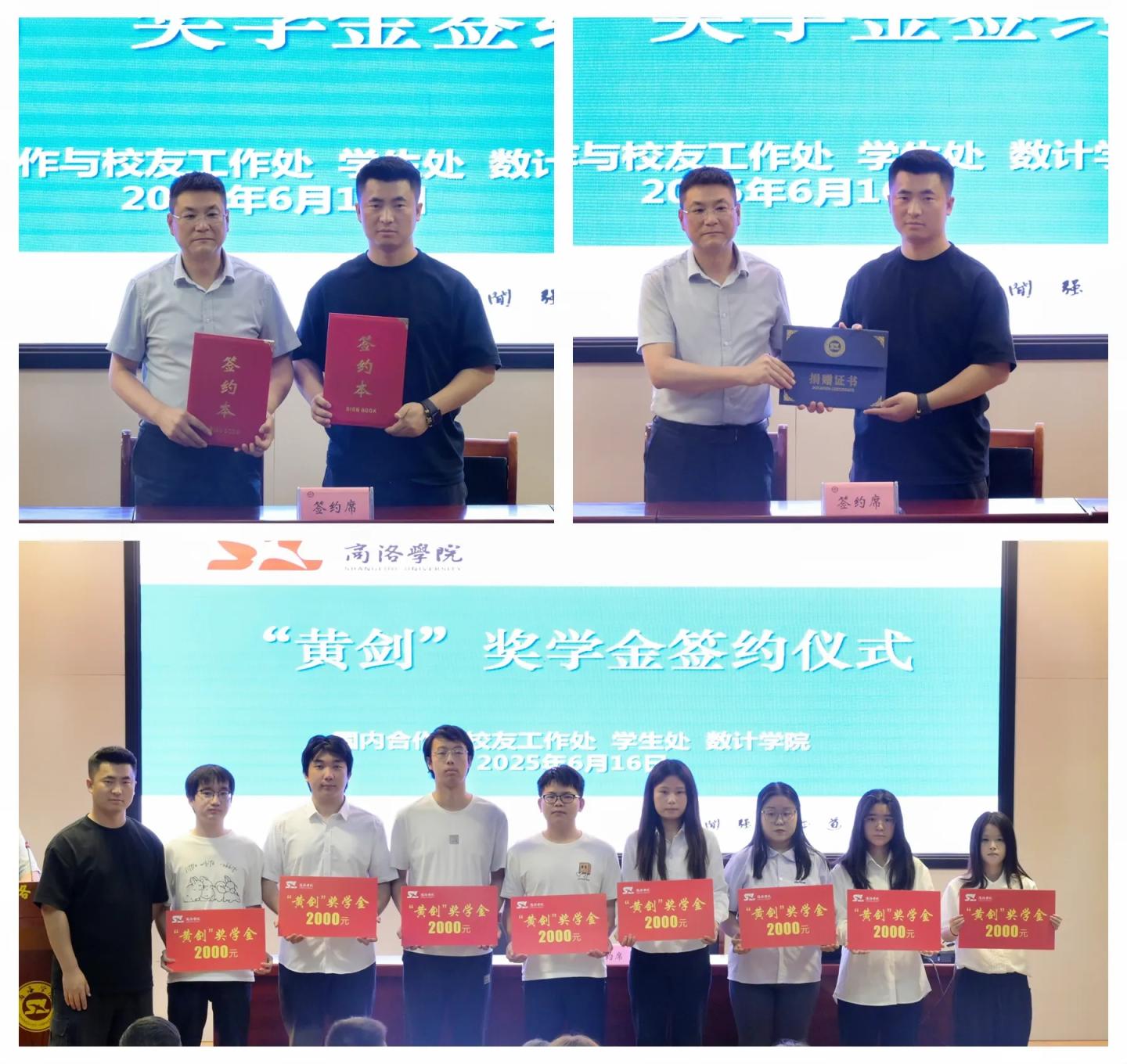 活動期間,校企雙方簽訂了《獎學金捐贈協議》、頒授了《捐贈證書》,黃劍現場為商洛學院2025年“黃劍獎學金”獲獎學生代表頒發了獎學金。