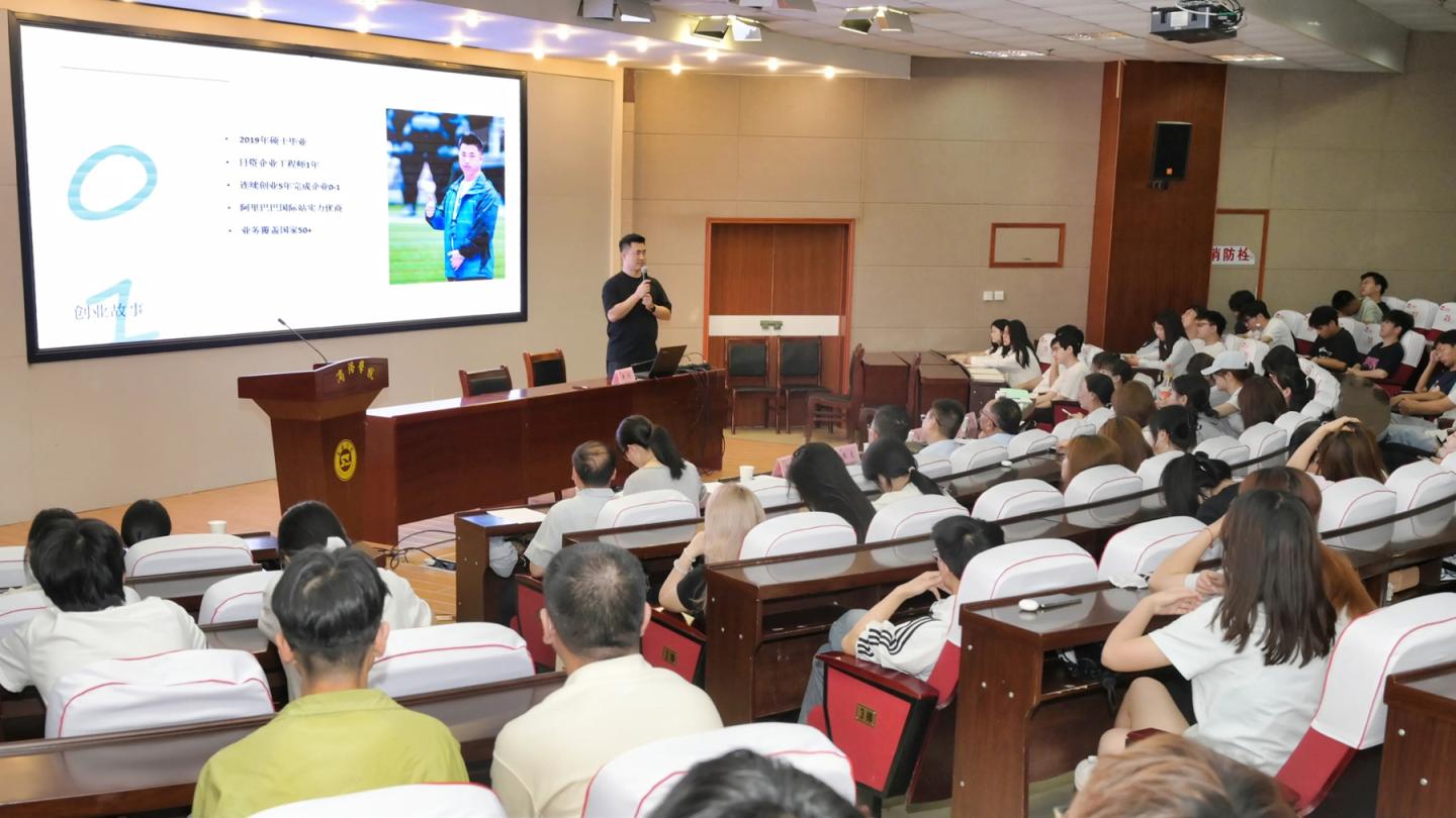 分享會上,黃劍以《規劃明天,贏在未來》為題,深情回憶了在商洛學院的學習生活時光,結合自身學習情況、考研經歷分享了自己的奮斗故事。他結合自己近年來的創業實踐,分析了當前的就業創業形勢,并從科學制定學習規劃、合理樹立職業目標、系統鍛造過硬本領等方面為在場同學講授了一堂生動的“就業指導課”。黃劍還分別前往人文學院、數計學院開展了就業宣講。