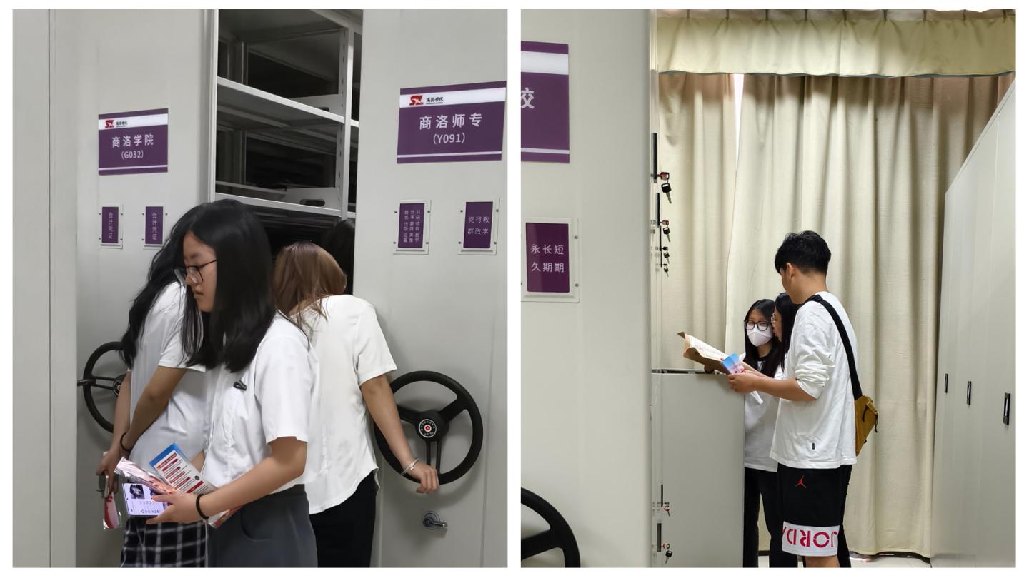 在啟動儀式上,工作人員現(xiàn)場為大學(xué)生普及個人檔案相關(guān)問題,同時通過設(shè)展架、掛橫幅、主題簽名、發(fā)放宣傳冊及檔案文創(chuàng)產(chǎn)品等形式,開展《中華人民共和國檔案法》《中華人民共和國檔案法實施條例》檔案知識宣傳。人文學(xué)院文秘專業(yè)的學(xué)生走進學(xué)校檔案室,參觀學(xué)習(xí)檔案知識。