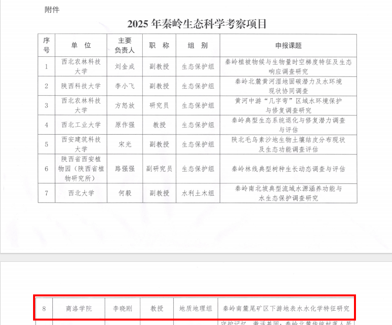 商洛學(xué)院青年教師獲批2025年秦嶺生態(tài)科學(xué)考察項目
