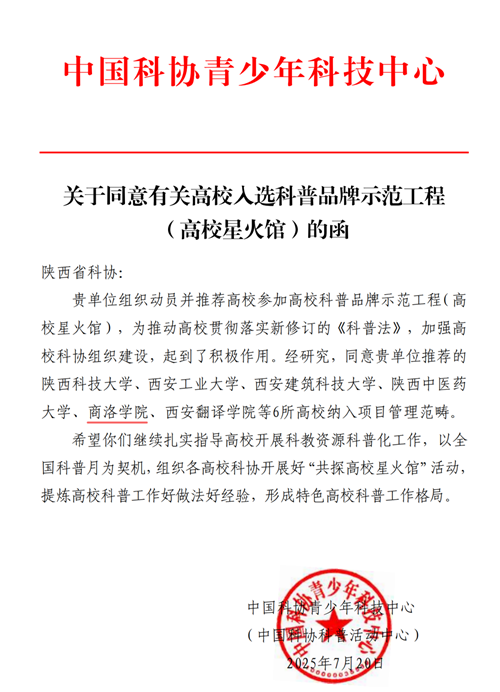 商洛學院入選全國高校科普品牌示范工程(高校星火館)建設高校