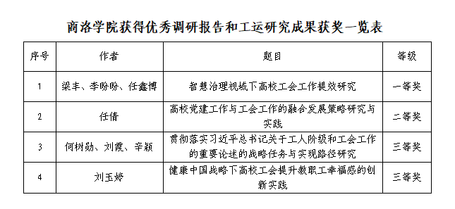 商洛學院榮獲2024年全省教科文衛體工會調查研究工作先進單位