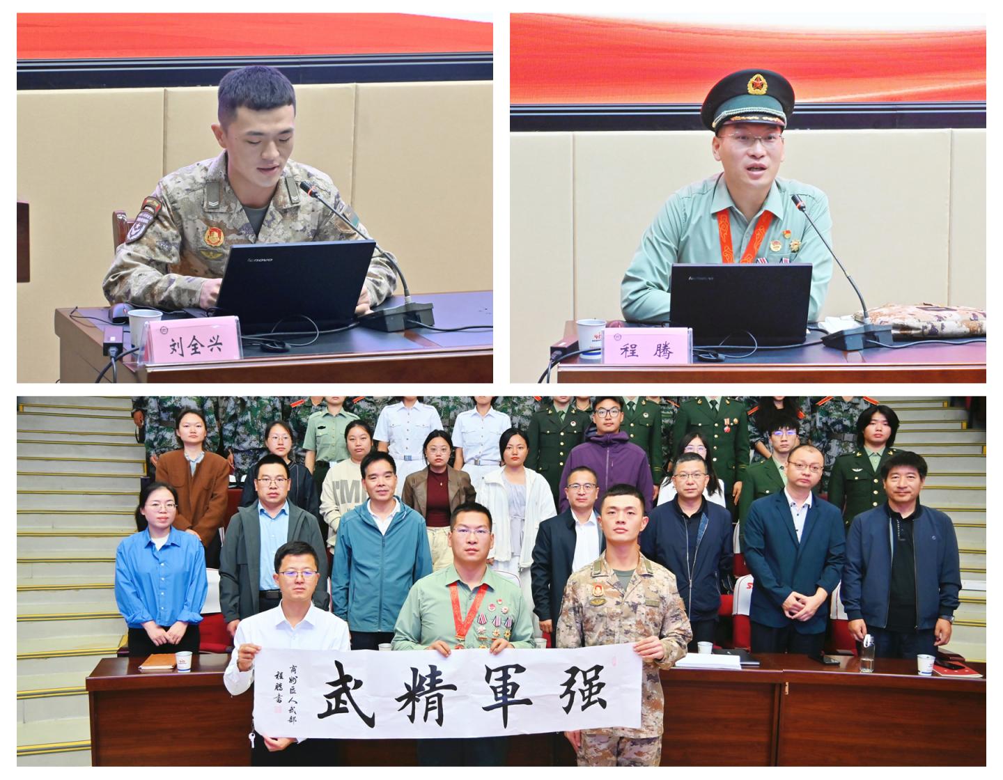 為增強廣大學生的國防意識,厚植愛國主義情懷,全面營造大學生參軍報國的濃厚氛圍,9月20日,我校邀請商洛籍海軍陸戰隊退役軍人、九三閱兵預備役部隊方隊受閱戰士劉全興,退役軍人、商州區夜村國有林場組織委員兼資源股股長、九三閱兵觀禮嘉賓程騰為2025級新生作國防教育專題講座。